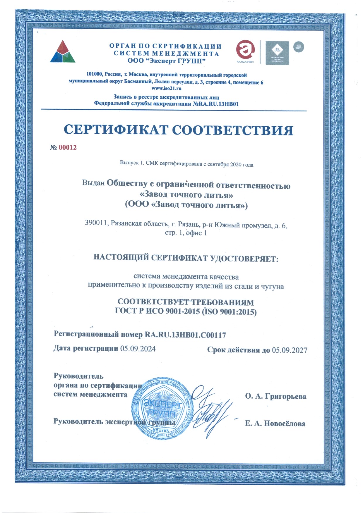 В 2017 году система качества на нашем заводе была сертифицирована в соответствии со стандартом ГОСТ Р ISO 9001–2015.